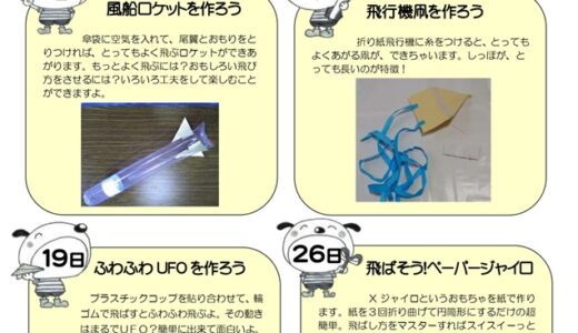 かざこし子ども森公園「おいで館」にて、4月から11月までの日曜日に開催。10時~12時、13時~15時の2回。参加費無料です。