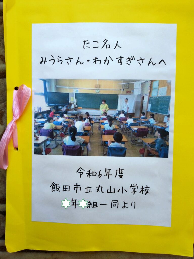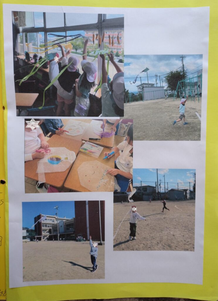 子どもたちに、たこの作り方やとばし方を教えていただきありがとうございました。「本物が作りたい」そう願っていた子どもたちが、今まで自分たちで好きなように作っていた、たこから、本物のたこへと近づく第一歩となりました。子どもたちは、お二人から教わった「プチたこ」「飛行機たこ」と共に風を体で感じ、とぶ面白さ、気持ちよさに喜んでいました。「先生、たこと遊んでくる!」そう言って休み時間に出かけていく子ども。ただのおもちゃではなく、共に遊ぶ1人の仲間としてとらえている様子が感じられました。私も子どもたちと共にものづくりのよさ、学びを改めて実感しました。子どもたちに豊かな体験を作ってくれ本当にありがとうございました。