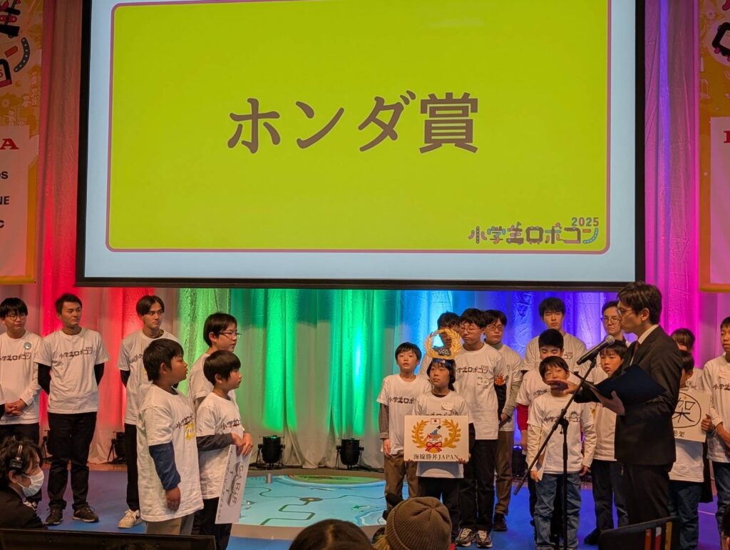 7月6日に行われた長野高専とコラボ企画「目指せ全国!小学生ロボコン工作教室」を受講した小学5年生がなんと全国大会出場を果たし チーム「ゴールデンビッグブリッジ」で「ホンダ賞」の特別賞を受賞しました。